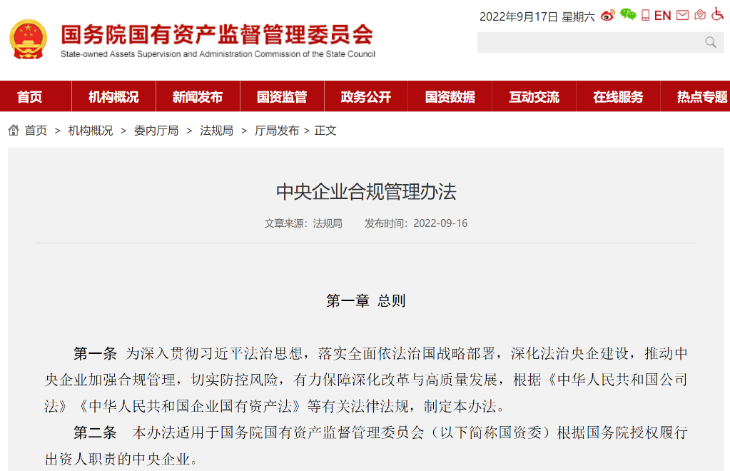 “2022年中央企业以合规管理为重点,深入推进法治央企建设,取得积极进展和明显成效。”国资委副主任翁杰明在会上表示。据他介绍,目前中央企业全部出台了合规管理基本制度,将1万多项合规要求植入管理流程,分级分类的合规管理制度体系逐步完善;合规管理运行机制更加顺畅,许多企业将合法合规性审查作为经营管理必经环节,去年全年审查重要决策1.5万个、合同70余万份。