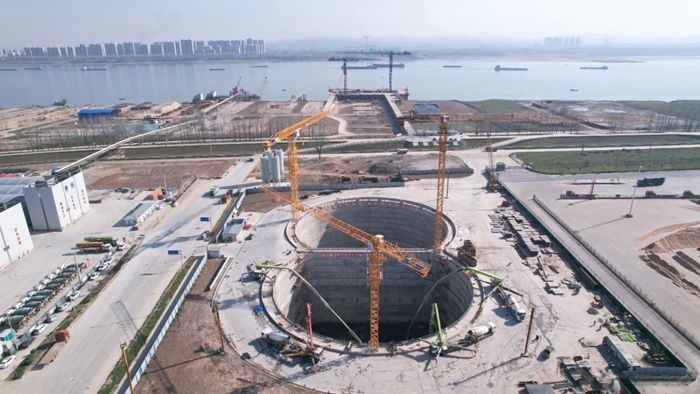 燕矶长江大桥北锚碇采用独特的“8”字形重力式锚碇结构,在燕矶长江大桥全线混凝土工程中,是施工周期最长、体量最大的关键性工程,混凝土总用量达42万立方米,总重量超过100万吨,其规模世界罕见。
