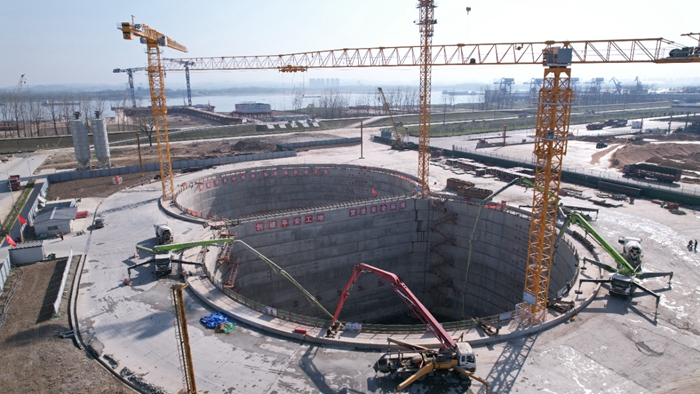 燕矶长江大桥北锚碇底板混凝土浇筑完成