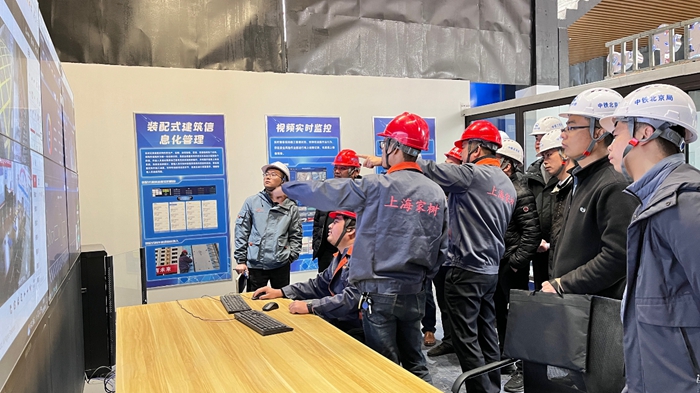 在项目现场,大家实地了解智慧建造e控中心运用演示,装配建筑的施工工艺,PC构件质量控制要点,安全管理措施效果展示,文明施工管理,建筑垃圾处置,实体样板参观等,并在项目管理模式、组织机构、团队设置,职能分工、业绩考核、晋升体系、成本控制、技术管理、安全应急管理等方面进行了详细交流。