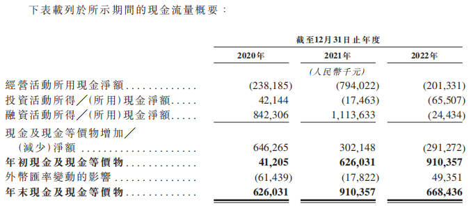 于2020年、2021年及2022年,Soul录得经营现金净流出分别为人民币238.2百万元、人民币794.0百万元及人民币201.3百万元,主要由于公司于日常运营产生净亏损。