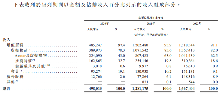 Soul透过提供增值服务产生绝大部分收入。于业务纪录期,增值服务收入分别占2020年、2021年及2022年总收入的97.4%、93.9%及91.1%。