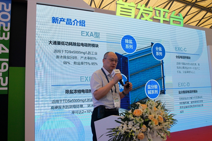 在第24届中国环博会首发平台上,上海宏济水业科技有限公司(下称宏济水科)发布了适用于污废水资源化与零排放的电吸附除盐、浓缩、分盐全流程系列新产品。