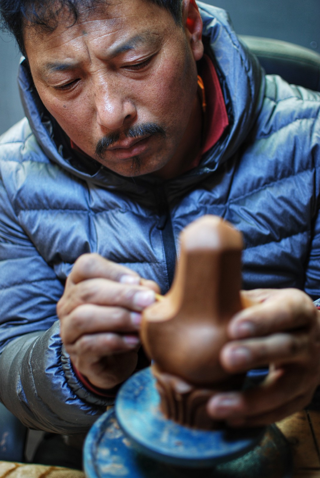 尼玛,男,藏族,1969年6月月出生,党员,高级技师,麦宿塑像技艺大师,德格县宗萨宁达艺术文化有限责任公司,钦乐工坊创始人,擅长利玛铜铜铸工艺,泥塑造像,以及錾刻工艺,从事本工种47年。