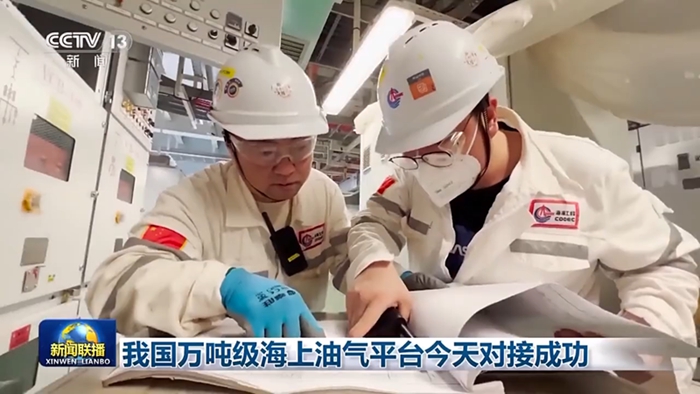 5月13日,在广东珠江口盆地水深近百米的海域,重量超过15000吨的中海油恩平20-4海上钻采平台与海底导管架对接成功,创造了我国海上油气平台动力定位浮托安装重量的新纪录,填补了国内技术空白。