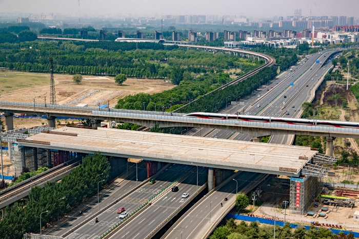 5月15日,北京房山区,在不封路、不断流的情况下,京雄高速公路(北京段)上跨京良路、地铁房山线钢梁顶推就位,精度达毫米级别。这步关键的“跨越”,为年内全线贯通奠定了坚实基础。