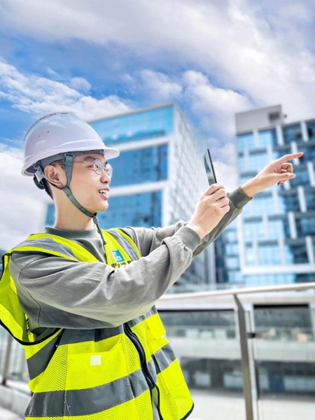 在广东省广州市威创智慧园项目上,项目工人陈庆国正在给母亲报平安。开年以来,项目一直处于忙碌中,陈庆国借助本次周末空闲时间向母亲送上节日祝福。
