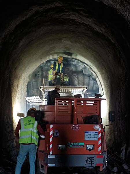 七里村隧道一号隧道全长1011.6米,纵坡采用“人”字坡设计,隧道主要穿越含砾粉质黏土及强、中等风化砾岩,为小断面隧道,岩体夹制作用大,大型机械作业困难。自2022年3月份开工以来,项目部立足技术创新,以七里村一号隧道为试点,积极开展技术攻关,创新利用超前探孔为爆破空孔,有效提升隧道光爆效果,解决了小断面隧道爆破进尺难的问题。自主研发了小断面隧洞自行式钻爆支护一体台车,通过对现有施工机械设备进行创新性改装成灵活方便、可移动式钻爆台车,周期使用率高,大大缩短各工序衔接时间,提高工作效率。