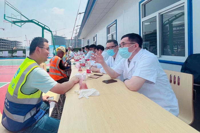 为关心一线职工身心健康,增加职工就医机会和渠道,强化职工的健康观念和预防疾病的保健意识,中建安装积极组织“送医疗进项目”活动。近日,中建安装上海公司工会就联合民盟上海市委志愿者服务总队,将医疗服务送到上海卓然项目,让“我为群众办实事”工作落到实处,让职工们切实感受到公司大家庭的温暖与关怀,提高职工的归属感和幸福感。