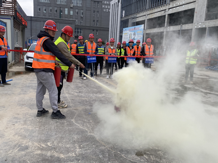 此次演练活动模拟了1号楼动火作业焊渣点燃防水板引发火灾。现场发现“火情”后,职工立即使用灭火器灭火并报告项目经理,接到报告后项目部立即启动消防应急救援预案,组织各小组有序开展救援。在各职能小组的配合下,火势得到控制,明火被扑灭,被困人员安全撤离。此次演练活动,有效提升了团队的协同处置能力和应急救援实战能力。