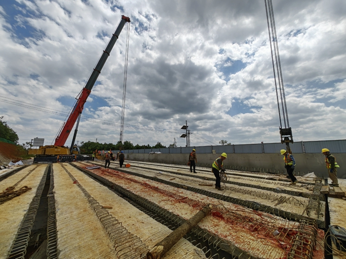 左幅预制T梁架设完成,拉开了观音山倒虹吸与武易高速交叉桥上部结构的施工序幕,为后续施工积累了宝贵经验,标志着剩余工程整体进展迈进了坚实的一步。