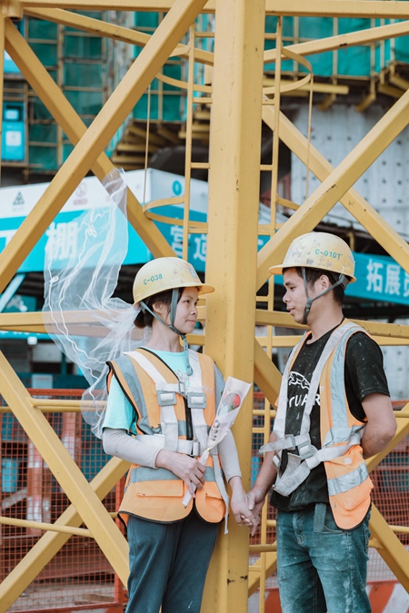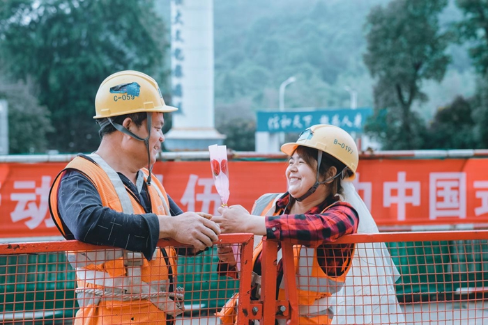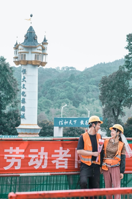 5月20日,中建五局三公司长沙恒大童世界项目为工地五对民工夫妻策划了一场“520”专属仪式感活动——拍摄工地写真。