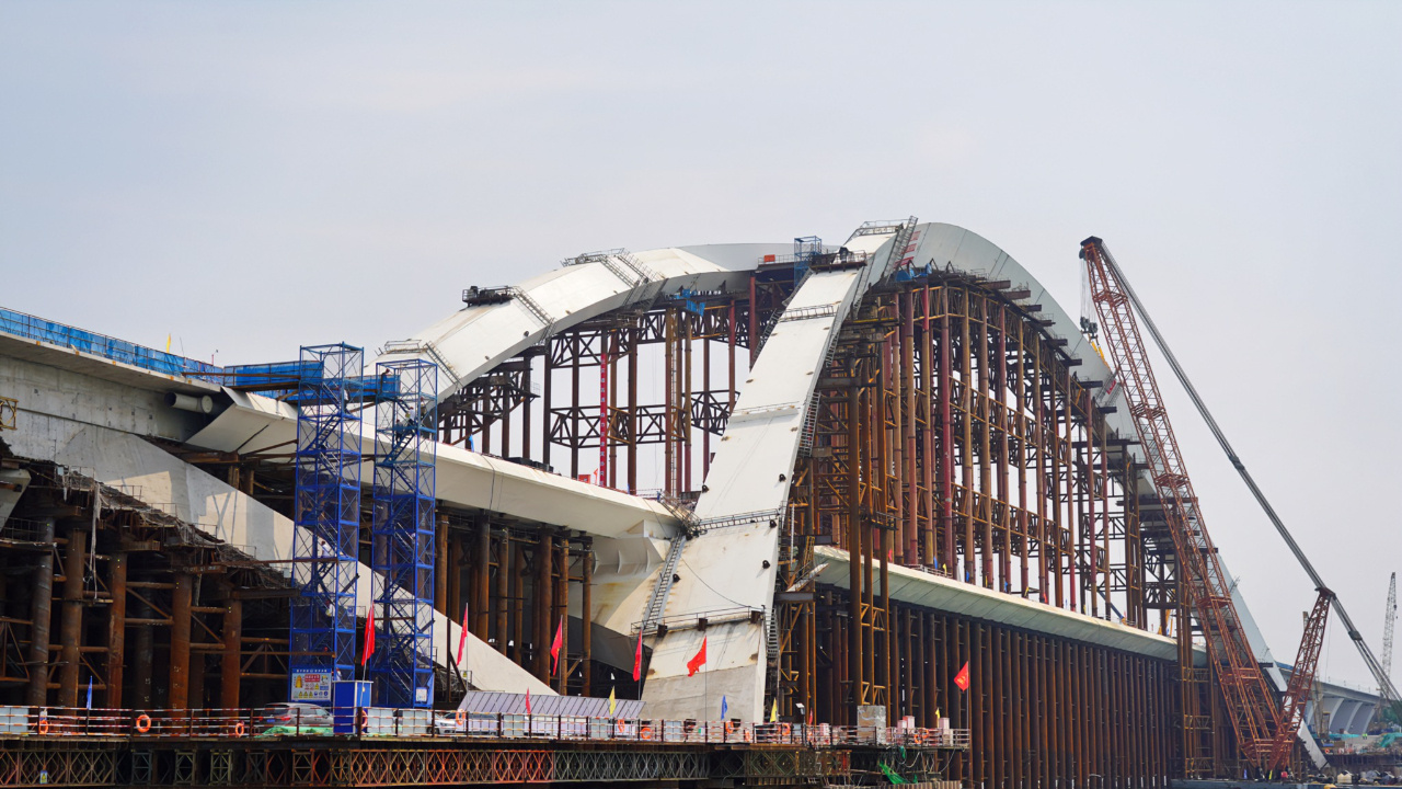 京雄高速公路全线重点控制性工程京雄大桥日前完成所有钢结构焊接施工,拱肋受力体系初步形成,主体结构完工进入倒计时,为京雄高速全线通车奠定了基础。