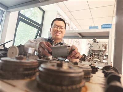 | “每个月,我要花300元用于购书学习。2013年,我在书店购买了德国版的《汽车机电技术》3册,这3本书特别好,知识到现在也不过时。在2018年赴德国参赛时,比赛的内容就是这些书上的知识,这也让我获得了第一名。”谈及频频获奖的“秘诀”时,程旭东说。自此,他在平时培训时都会告诫徒弟,要勤学好学,一方面是为了解决生产中的实际问题,另一方面也是自身知识的积累。 |