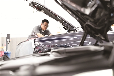 | “面对一个陌生的品牌,我既有优势,更有压力。优势在于有大众汽车维修的基础和经历,能够迅速地找到品牌间的技术差异,有针对性地学习和提升;压力在于进入一个全新的领域,车型陌生、流程陌生、团队陌生,面对新的环境和新的技术,只能‘笨鸟先飞’。我充分利用工作时间,不断学习新技术和相应的理论知识,通过快速解决车辆的疑难故障,以过硬的技术赢得客户肯定。”程旭东说。 |