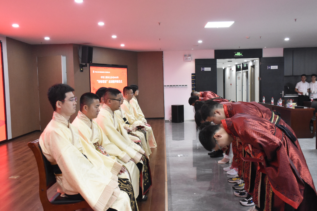 原来,为传承和发扬汉文化精神,推动企业文化蓬勃发展,引导广大青年员工在学习中增长才干,在实践中施展才华,该企业精心组织了这样一场拜师仪式。最终,行完汉礼,师徒双方郑重在合同上签下各自姓名,在热烈的掌声中,随着主礼人高声喊出“礼成”,双方正式结为师徒。