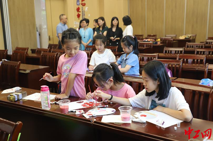 “双城暑托班”开展手绘扇子课程。 李菁 摄