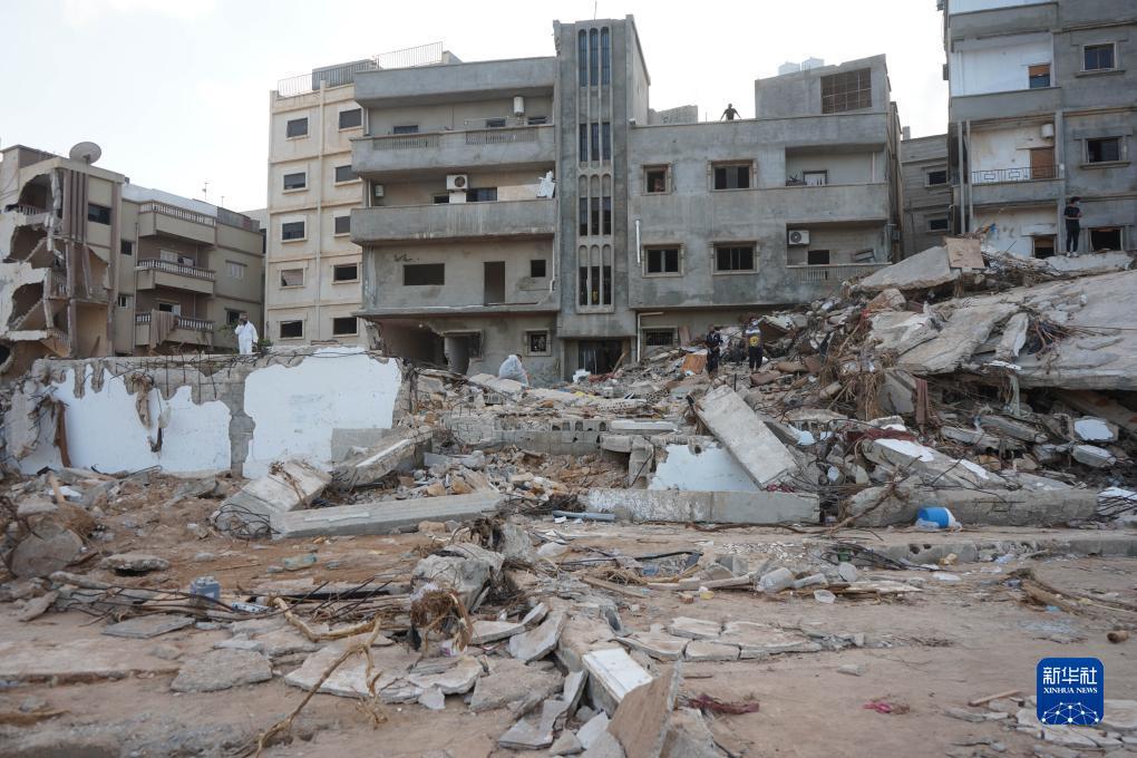 这是9月16日在利比亚德尔纳拍摄的建筑废墟。
