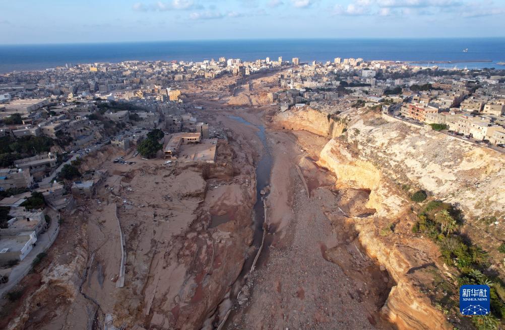 这张9月16日的航拍照片显示的是利比亚德尔纳受灾地区的景象。
