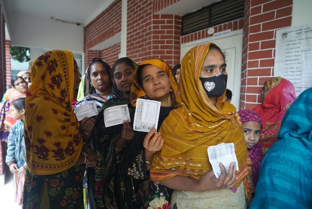1月7日,在孟加拉国达卡的一个投票中心,人们排队等候投票。新华社发