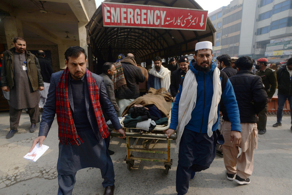 1月8日,人们将伤者送往巴基斯坦白沙瓦的医院。
