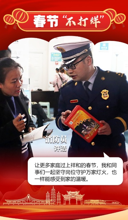 对于普洱市宁洱哈尼族彝族自治县的消防官兵许浩来说,只要和同事一起守护住万家灯火,就是春节最有仪式感的幸福。