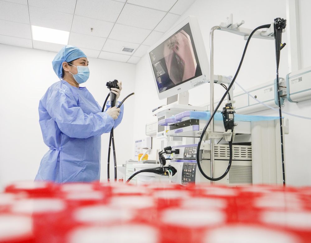 2024年1月2日,河北省遵化市中医医院的医生在调试设备。新华社发(刘满仓摄)