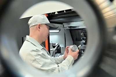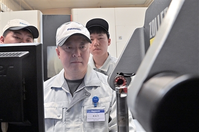 在飞速运转的数控机床前,唐山松下制造部制造工艺课系长苑俊杰神情专注,正在埋头研究改良一个重要零部件的生产加工方法。