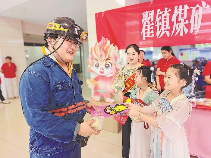 9月17日,山东能源新矿集团翟镇煤矿组织开展“情暖中秋 平安矿山”祝福送基层活动。在井口等候室,该矿工会组织“新矿心”志愿者、“和美心”巾帼志愿者、安全协管员、职工子女支起摊位、摆好月饼,通过安全知识有奖问答、“谈心式”宣讲的形式,引导职工学规范。工人日报-中工网记者 田国垒 工人日报通讯员 刘玉玲 摄