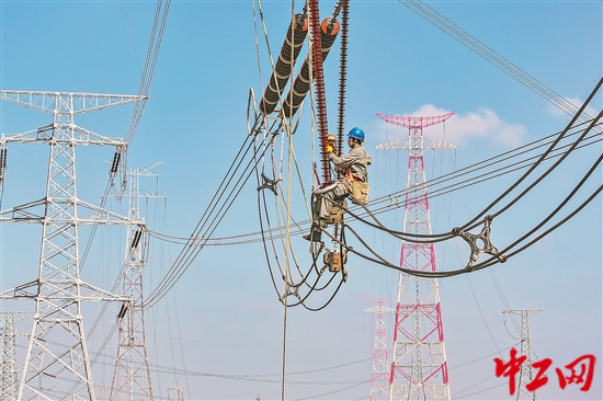 10月23日,在江苏泰州凤城至无锡梅里500千伏输变电工程年度检修现场,江苏省送变电有限公司检修人员正在对跳线悬垂合成绝缘子串进行更换,保障电网安全稳定运行。据悉,该工程是我国规模最大的超高压跨越长江输变电工程,自投运以来,已累计送电超175亿千瓦时。工人日报-中工网记者 王伟 通讯员 史俊 摄