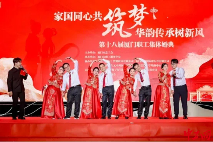 第十八届厦门职工集体婚典在厦门五一广场举行。厦门市总工会供图