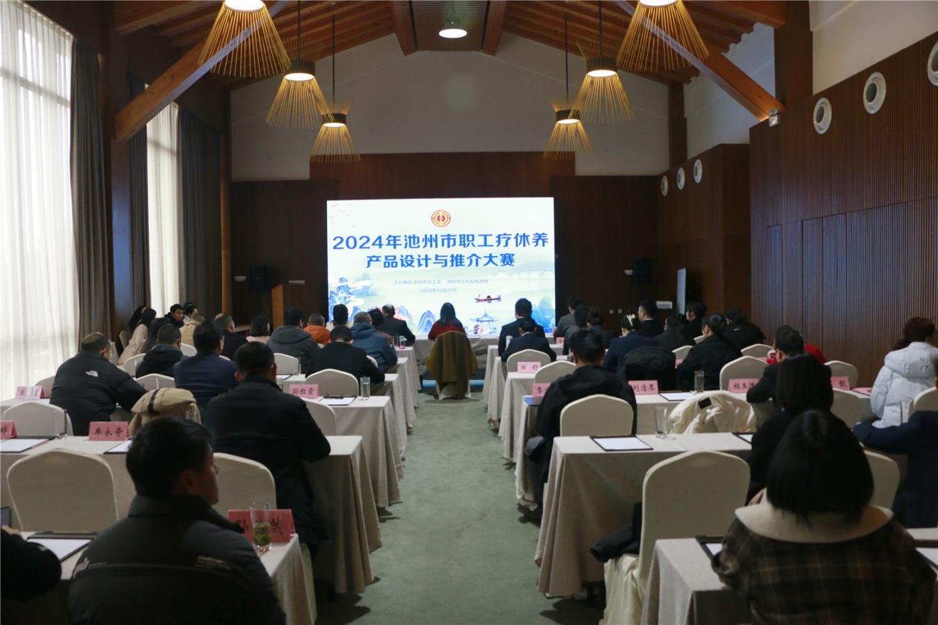 2024年12月27日,安徽池州市职工疗休养产品设计与推介大赛在青阳县朱备镇九华山德懋堂度假村举办。此次大赛由池州市总工会和市文化和旅游局联合主办,吸引了17名来自不同职工疗休养基地的选手同台竞技,共同展现池州独特的疗休养魅力。