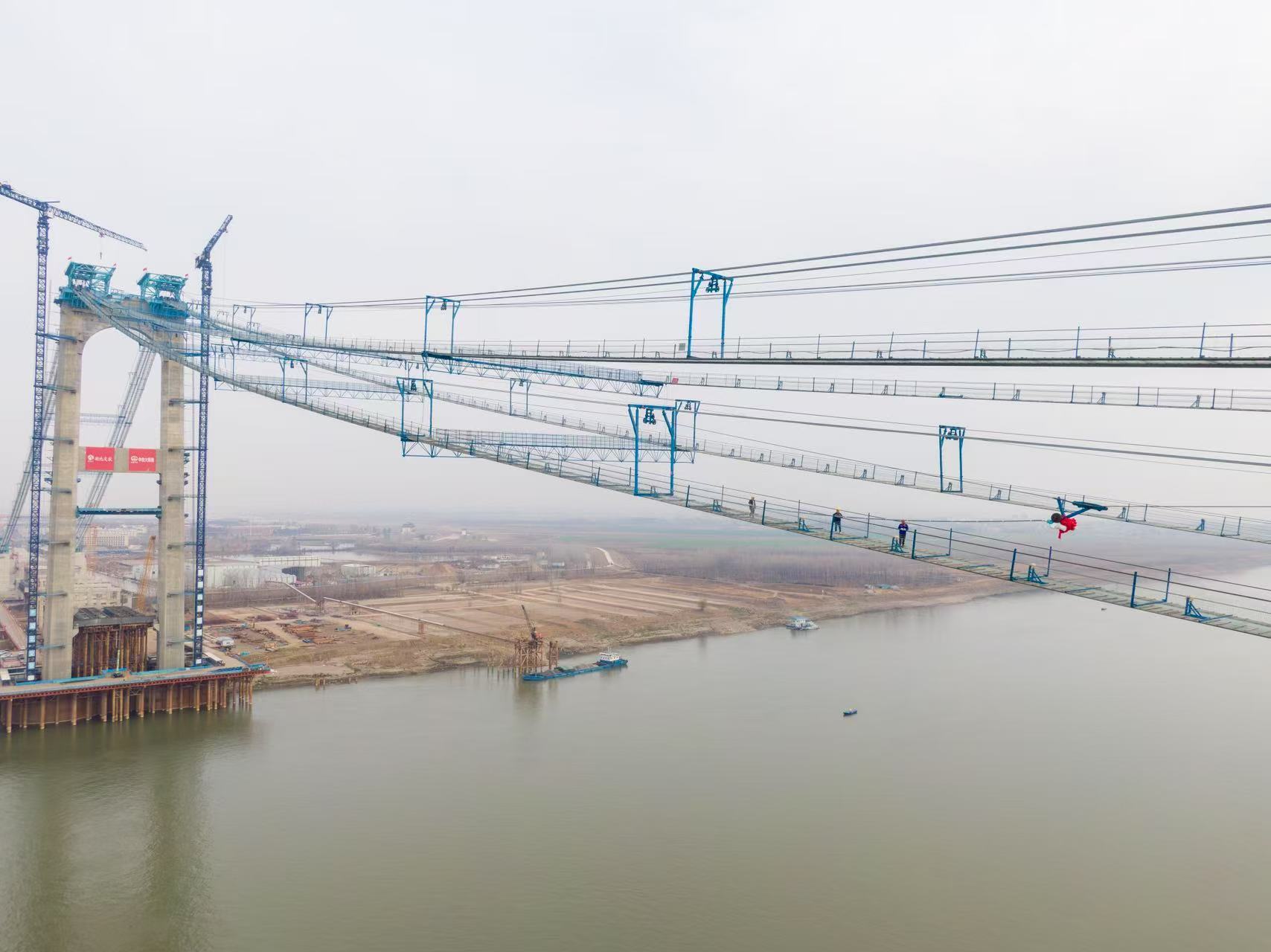 工人日报-中工网记者 张翀 通讯员 张静 王洪松 1月7日,随着上游侧长约3000米、重达71吨的主缆基准索股顺利牵引过江,由湖北交投投资、中铁大桥局承建的世界最大跨度四主缆悬索桥——燕矶长江大桥首根主缆索股架设完成,标志着大桥正式进入主缆架设阶段。 燕矶长江大桥主跨1860米,大桥位于鄂黄长江大桥下游6.5公里处。大桥设计采用不同垂度四主缆悬索桥结构体系,为世界首座。其中,主缆直径约为1米,内侧两根主缆拉着第一层,外侧两根主缆则拉住第二层。在四根主缆的协力下,燕矶长江大桥的桥面底部距离最高水位时才能保证通航净空要求。 中铁大桥局燕矶长江大桥项目总工程师李陆平介绍,“与四条主缆对应的需要四条猫道作为上部结构主缆施工的‘空中人行道’,为此中铁大桥局创新施工设计采用了国内首座等宽非对称猫道,每条猫道外侧距主缆中心2.0米、内侧距主缆中心1.45米,解决了单侧双主缆间距小和不同垂度导致的施工技术难题。” 为提高主缆的安装效率,项目团队将采用中铁大桥局自主研发的“基准索股高精度测量装置”和“一般索股智能测量尺”等专利产品,进一步提高索股的测量精度,缩短主缆线形的调整时间。 大桥建成后,黄冈到鄂州花湖机场车程仅需15分钟。