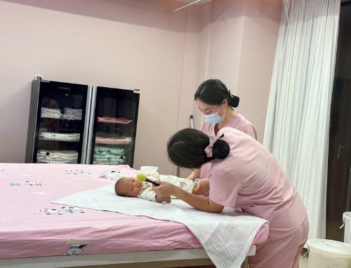 图为大通县悦子树健康管理有限公司护工正照料新生儿。 农民日报·中国农网记者 孙海玲 摄