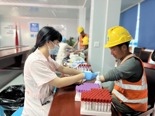 此次活动,项目部在现场设置临时医疗体检点,为工人进行了内、外科体检,心电图等常规检查。