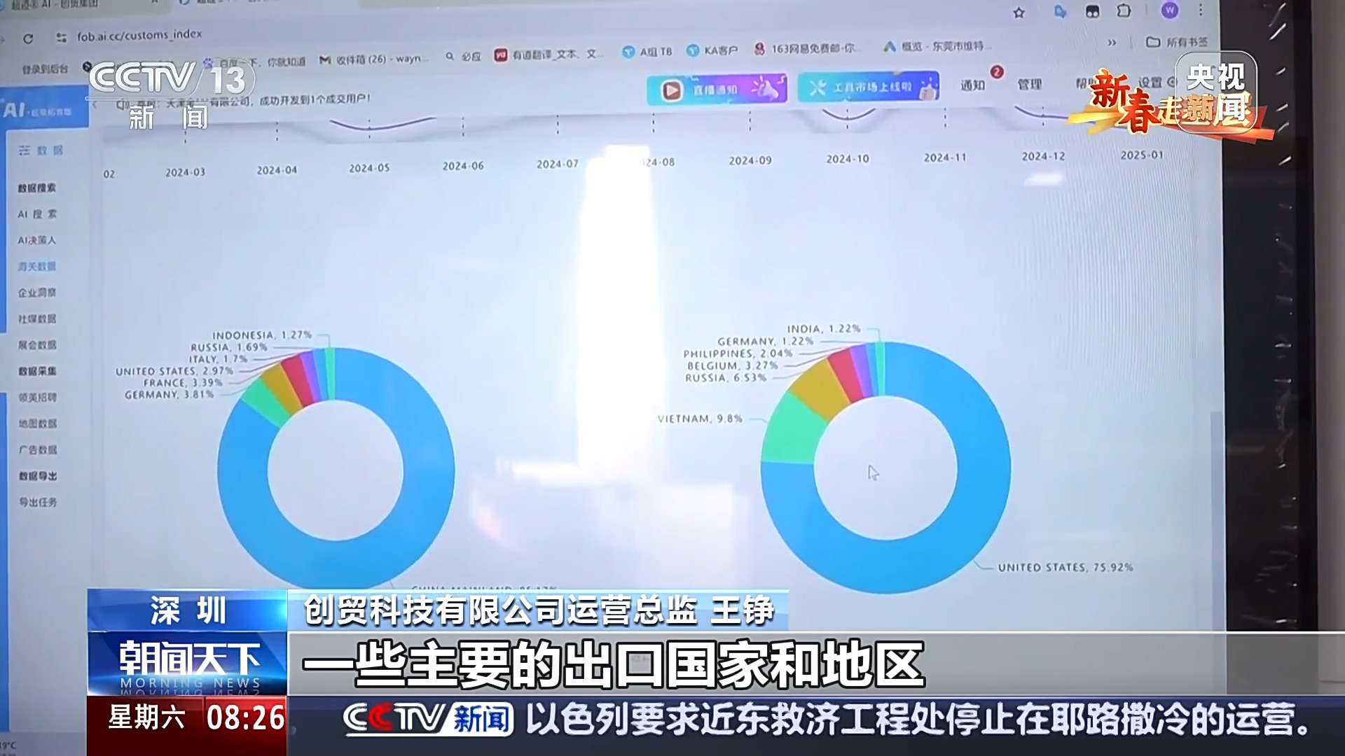 在深圳,有两家做咖啡的民营外贸企业,一个做传统的咖啡机,一个做机器人咖啡机,不同发展路径却都成为深圳市专精特新企业。春节前夕,新春走基层记者来到了这两家风格迥异的企业。 记者在深圳宝安区的一家科技工业园区走访时,正赶上几位格鲁吉亚的外商,来一家生产咖啡机的外贸企业参观考察。 几番洽谈后,这家企业收到了一份惊喜的“新年礼物”。 格鲁吉亚客商 苏利科·瓦尔塞马什维利:我们已经到中国几天时间了,中国的产品质量在全球都处于领先地位,我们准备订购10万台。 深圳市西啡科技有限公司负责人 刘优良:订单就是我们企业的生命,同时也很有压力,这也意味着我们要铆足干劲。 刘优良告诉记者,2024年,他们的外贸出口额达到了2200多万美元,今年订单也已经排到了下半年。 记者:咱们春节前后总共会有多少批货发出去? 深圳市西啡科技有限公司负责人 刘优良:总共在春节期间我们大概还要发三万多台机器。 如今,他们生产的咖啡机已销往世界87个国家和地区,而此时信心满满的刘优良却曾面临企业生死存亡的困境。作为一家传统外贸企业,他们靠普通家用咖啡机走进了市场,而随着客户需求发生变化,企业开始连年亏损。 深圳市西啡科技有限公司负责人 刘优良:整个企业可能就要崩掉了,这个时候就让我意识到了,我们一定要拥有自己的核心的技术。 在低端市场痛苦挣扎的小企业急需寻求突破。而往什么方向突破呢?在政府部门组织外贸企业参加的一次境外展会上,刘优良了解到了市场对高端商用咖啡机的潜在需求。 深圳市西啡科技有限公司技术总监 张远献:因为这个产品跨越是“从0到1”,各方面技术指标要求都高得多,没有完整的可以借鉴的经验。 整整三年,埋头攻关核心技术,产品从五六百元的家用咖啡机,华丽转身为价值上万元的商用胶囊咖啡机。如今,不同价位的40多种产品手握超过270项的国内和欧盟专利,为企业每年创造2亿多元的营收。 告别了匆匆忙忙带客户继续考察的刘优良,记者又来到了一家年轻的机器人咖啡机外贸企业。 记者:你在忙什么呀? 安诺机器人(深圳)有限公司创始人 黄煌:这会在接待客户,现在海外客户越来越多,销售忙不过来,感觉现在自己的口语水平都提高了。 与刘优良不同,黄煌是个技术研发出身的90后,不善言辞,腼腆爱笑。同样是咖啡机,他们企业的名称却是机器人公司。 选定了口味和花型,机械臂开始挥舞,90秒后,一杯拉花现磨咖啡就出现在面前。酷炫的全自动制作流程让第一次来到这里的印度客商果断下了单。 印度客商 阿林达姆·加拉伊:我们来中国寻找自动化设备,这次会订购拉花咖啡机器人、奶茶机器人和调酒机器人6套,未来可能会陆续增加到200套。 采访期间我们看到,黄煌走路带风,忙得不可开交。6年来,痴迷于“机械臂”研究的他,带着平均年龄25岁的研发团队,潜心钻研机械臂的市场新应用。运用视觉捕捉技术,自主研发控制系统,经过了上万次的改良与测试,终于实现了咖啡拉花的精准复刻。 安诺机器人(深圳)有限公司创始人 黄煌:这些动作都是我们提前通过捕捉好咖啡师的动作,然后经过训练之后来用机器人实现的,我们牛奶都将近用了三吨左右。 珠三角地区扎实的制造业基础和完善的产业链,也为黄煌这样的新型外贸创业企业提供了支撑。 安诺机器人(深圳)有限公司创始人 黄煌:像我们钣金还有我们机器人的关键零配件制造,各方面的产业链很丰富,我们的制造成本各方面都能得到很好控制。 黄煌说,2024年对于他的团队来说是难忘的一年。除了咖啡机器人,他们研制出的调酒机器人、冰激凌机器人等产品出口到了北美、欧洲等60多个国家和地区,出口额比2023年翻了一番。 这段时间,通过政府部门的牵线搭桥,黄煌认识了一家高科技企业,他们运用大数据等技术,专门为外贸企业分析市场趋势,帮助中小外贸企业拓展线上海外业务。 创贸科技有限公司运营总监 王铮:我们统计了一下,目前全球关于这一款产品的一些主要的出口国家和地区,以及进口国家和地区也是展示出来了。 深圳市宝安区商务局副局长 蔡庆冬:2024年我们是组织了企业出去参加了境外的展接近有30场,然后企业超过200家,我们政府也是要大力支持这种中小外贸企业,帮他们拓订单、找订单,尽可能地全链条给我们的外贸企业做好服务、做好保障。 夜已经深了,这些外贸企业还在不知疲倦地和万里之外的客商交流,抓住每一次机会,争取每一笔订单。 2024年,深圳市进出口首次突破4万亿元,同比增长16.4%。民营企业是拉动深圳外贸增长的最主要主体,规模占比首次突破了七成。2025年,他们依旧带着韧性和活力,心怀希望,勇往直前。