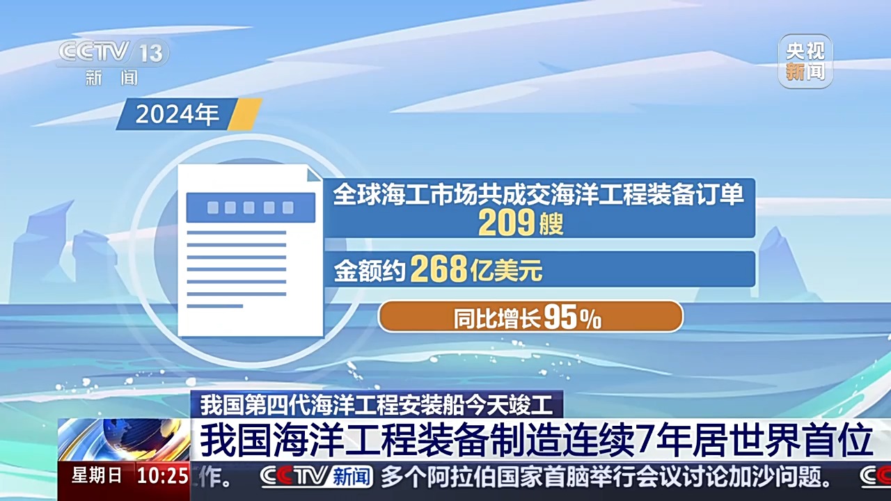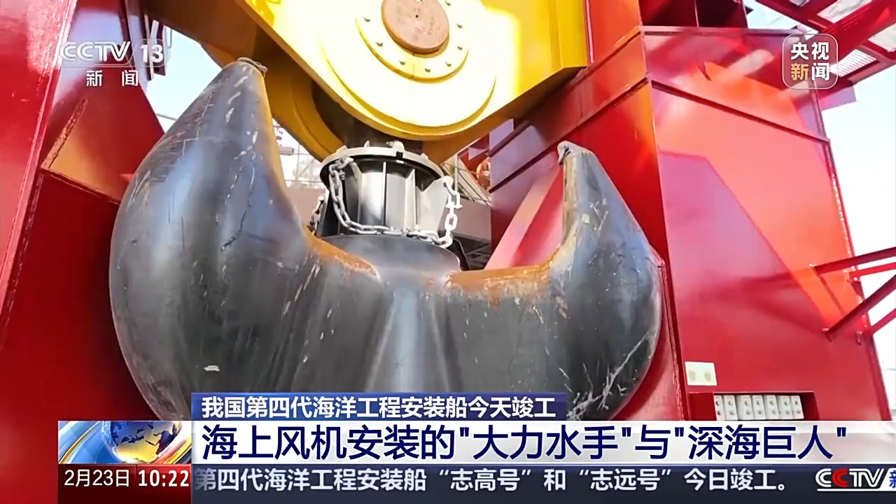 今天(23日),我国自主研发的第四代海洋工程安装船“志高号”和“志远号”,在江苏南通竣工。这两艘船的主要任务是将风机也就是我们常说的“大风车”运送至深远海,并进行安装等施工作业。一起感受一下这两大海上风电安装利器背后的“硬核力量”。 总台央视记者 古峻岭:我现在是在我国第四代海洋工程安装船“志远号”上,在我身后是和它同期竣工的海洋工程起重船“志高号”。这两艘船共同设计,互相配合,形成我国海洋工程安装的最佳组合。它们可以在离岸100公里处的海域展开作业,为我国海上风电挺进深远海提供强力支撑。 海上风电“双子座”安装船是我国第四代风电海洋工程装备,也是全球最新一代的风电安装船。相比于第三代海工装备,在技术和性能上实现了质的提升。这对海工“双子座”组合是我国抗风浪能力最强,综合安装能力最优,作业效率和智能化水平最高的风电安装船组合之一。 中电建海洋工程建设公司总工程师 张伟峰:两艘船完成1台海上风机的安装仅需2~3天,较第三代风电安装船安装速度提升30%,并且可以抵御16级大风和12米海浪,是推动海上风电规模化挺进深远海开发的核心装备。 海上风机安装的“大力水手”与“深海巨人” 作为我国第四代海洋工程安装船,“志高号”和“志远号”两艘船舶,在深远海吊装、打桩等方面作业能力出众。它们都有哪些独特的设计和先进技术呢?一起登船,近距离了解这两大海上风电安装利器。 总台央视记者 古峻岭:这两艘船是海工装备安装的最佳搭档,它们的本领各有所长。“志高号”的主要功能是吊装和基础打桩,它就像是一个大力水手,有着力大无穷的臂膀。位于船尾红色的巨型桶桩,加上顶部这130米长的臂架就是它的主吊系统。这边巨大的锚状的就是它的主吊钩,它就像是人的抓手,它可以吊起3600吨的货物,这相当于一次性能够吊起2500辆家用轿车。它能够进行360度的旋转,和上一代的海工安装船相比,旋转的速度提升了整整一倍。而且它的精度还非常高,数千吨的货物吊装的精度误差不超过10厘米。 这里就是“志高号”的主机舱,它有着4颗强大的心脏,就是它的发电机组。它1小时就能发电17000度,能够满足近2000户家庭一天的用电需求,有了它就能满足整艘船全天候高强度的作业。 “志远号”和在海面上漂浮作业的“志高号”最大的不同,就是这艘船它多出了4根125米的大长腿,这使得它可以深深地扎入海底的海床,能够在水深70米的海域进行海上风电机组的安装作业。 这个柱状的红色高塔就是志远号的吊机,它最高可以把货物吊到170米的高度,相当于58层楼高。海上机组最后的安装工作,特别是机舱和叶片的安装就是由它来完成的。 那么“志高号”和“志远号”是如何共同完成一台风机的安装的呢? 首先,“志高号”凭借“大铁臂”,将钢管桩吊起插入水中,吊起打桩锤,把钢管桩打入海底,完成基础打桩。 随后,“志远号”利用 “大长腿”稳稳扎入海底,并将船体升高,为海上安装提供稳固的平台。它把塔筒吊装到基础上,然后将风机机舱、扇叶逐一安装到塔筒顶端,这样风机就安好了。 两艘船紧密配合,能够满足单机容量25兆瓦的深远海一体化海上风电高效率施工作业需求。 我国海洋工程装备制造连续7年居世界首位 新装备不断投产,进一步巩固我国在海洋工程装备领域的领先优势,市场份额已连续7年居世界首位。 制造这两艘海上风电安装船的江苏南通振华重装码头是国家级海工装备和高科技船舶先进制造业集群所在地,这里的海工装备约占国内市场1/4,船舶制造业规模居国内第一。 不仅仅在南通,数据统计,2024年全球海工市场共成交海洋工程装备订单209艘,金额约268亿美元,同比增长95%,其中,我国新承接各类海洋工程装备108艘、金额约186亿美元,占世界份额69.4%。海上风电船舶未来5年预计将保持25%左右的高速增长。 同时,我国高端船舶海工装备领域“含新量”和“含绿量”不断实现技术突破。浮式液化天然气生产储卸装置、浮式生产储卸油装置、大型海上风电安装船、新型海上风电运维船订单批量承接。2024年,我国新接绿色船舶订单国际市场份额达到78.5%,并实现了主流船型的全覆盖。 (总台央视记者 王世玉 古峻岭 唐高林 黄成 南通台)