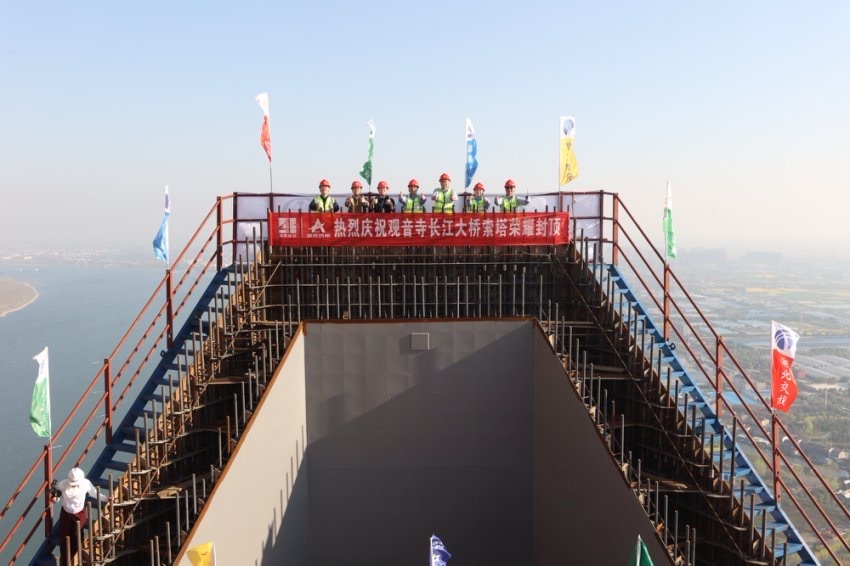 工人日报-中工网记者 甘皙 记者从交通运输部获悉,3月25日下午,由湖北交投集团投资、湖南路桥承建的荆州观音寺长江大桥公安侧主塔施工顺利封顶,标志着大桥建设取得阶段性胜利,为后续主梁架设及斜拉索安装奠定了坚实基础。 作为武松高速江陵至松滋段的关键控制性工程,观音寺长江大桥为主跨1160米的混合式钢-UHPC组合梁斜拉桥,创下四项“世界之最”( 世界第一大跨径公路斜拉桥、世界最大跨径组合梁斜拉桥、世界最大跨径钢—UHPC组合梁斜拉桥、世界首座超千米组合结构斜拉桥)。 索塔钢筋及钢壳采用部品化施工工艺,施工中需在高空精准“搭积木”,技术难度极高。项目团队创新研发“复杂钢筋部品重心快速计算程序”,结合“胎架分节预制、部品整体吊装”工艺,再通过R4300型塔吊+可调重心式多功能组合吊具整体吊装上塔,降低了高空钢筋部品及钢壳段安装作业施工难度风险,实现毫米级精准定位安装,攻克了塔身线型控制的难题,保障塔柱部品化高效施工。 为有效保证施工进展,项目团队采取塔梁异步施工模式,通过优化技术方案和现场施工组织安排,有效克服了现场交叉作业、索塔截面尺寸渐变,外观质量线型控制及C60高标号混凝土超高泵送等技术难题,并组织党员突击队昼夜奋战,最终突破施工瓶颈,顺利实现了主塔封顶。 观音寺长江大桥建成后对推进交通强国建设、完善长江经济带骨干路网结构、优化湖北省高速公路网布局、加强武汉城市圈与长江中游城市群之间的联系具有重要意义。