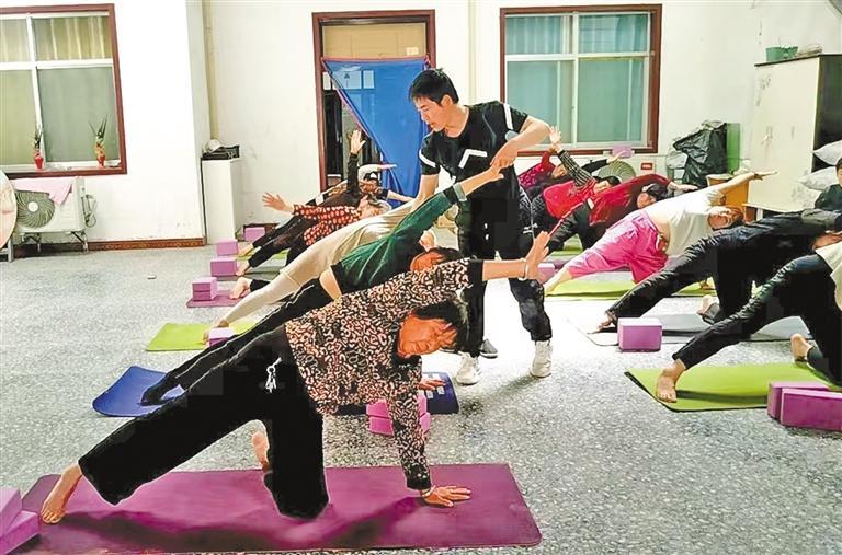 原标题:“我在村里教瑜伽” 陕西日报记者 仵永杰文/图 最近一段时间,位于富平县城的富平县仙平瑜伽生活馆,时常有年轻女性前来练习瑜伽。在富平县到贤镇忠惠村,20多名村民也在练习瑜伽,房前屋后的木桩成了她们的瑜伽砖。 县城和村里的瑜伽学员,教练是同一个人——45岁的孙小峰。2019年以来,孙小峰在富平县仙平瑜伽生活馆当瑜伽教练。去年5月起,他开始定期回老家到贤镇小惠村,义务为小惠村及周边的村民教授瑜伽。 5月16日,在富平县到贤镇小惠村,孙小峰带领村民练习瑜伽。 瑜伽“进村” 初夏的午后,小惠村里静悄悄的。一户农家小院外,核桃树枝头已冒出拇指般大小的果实。远处的山峦起起伏伏,连绵不绝。 说话声打破了宁静。5月16日下午,小惠村的妇女来到固定的瑜伽练习地点——一户村民宽敞的院子。这处院子位于孙小峰家对面,院内有顶棚,地面上贴着瓷砖。农忙时,这里用来晾晒小麦和花椒。 早到的妇女聚在孙小峰家,帮孙小峰的母亲汪秀芳做饭。练习瑜伽前,她们的生活场景大多是干农活、管孙子。 人聚齐后,瑜伽练习正式开始。她们从院子的角落取出瑜伽垫铺平,又拿出瑜伽砖放在身旁,汪秀芳也在队伍中。这支队伍就是她帮忙组织起来的。“都是老姐妹,身体好比啥都强。”汪秀芳说。 “两腿向前,两手向后撑开。身体倒向一侧,眼睛看向另一侧。注意动作缓慢、呼吸平稳。如果感觉有困难,可以暂时停下。”为了让大家听得懂,孙小峰用方言讲解要点。 给村民教瑜伽,孙小峰很快摸索出一套自己的教学方法——通过拉伸充分热身,保证练习全过程安全;根据身体状况选择合适的动作,注意循序渐进、量力而为。 小惠村的瑜伽练习结束后,孙小峰又赶到忠惠村上课。因为条件有限,他让大家拿来木桩当瑜伽砖。村民很感兴趣,力争将每个瑜伽动作做到位。休息时,孙小峰会组织大家唱秦腔、猜字谜、玩游戏。 忠惠村村民许敏丽说:“对于农村中老年群体来说,练习瑜伽是一个很好的锻炼机会。跟着教练练习瑜伽,每个人的热情很高。练习一段时间后,肩颈腰腿疼痛得到缓解,身体也逐渐轻松了。” 村民健身的带动者 2000年前后,20岁左右的孙小峰步入社会。他在西安开过炸鸡店,学过婚纱摄影。因为长期坚持运动,他偶然接触到瑜伽。掌握瑜伽练习的技巧后,孙小峰成为一名瑜伽教练。 去年5月,孙小峰的乡村瑜伽课在小惠村正式开课。“起初,我是想给妈妈教瑜伽,让她强身健体。后来,妈妈把同龄人叫来共同练习,希望大家一起收获健康与快乐。”他说。 由于长期在外工作,加之性格比较内向,孙小峰很少与村民打交道。然而,他带领村民练习瑜伽时,却像变了一个人——大声喊着动作要领,与村民开玩笑、做游戏…… 教大家练习时,孙小峰会选择一些简单易学的瑜伽动作,以及八段锦等传统健身招式。渐渐地,村民体会到练习瑜伽带来的好处——提升睡眠质量、缓解肩颈腰腿疼痛、减轻体重。随着练习瑜伽的人逐渐增多,孙小峰越来越有信心。 同时,孙小峰还“上门送教”,前往小惠村附近的村教瑜伽。目前,他定期去富平县到贤镇、淡村镇及三原县陵前镇等地,带领近10个村的约300人练习瑜伽。 如今,练习瑜伽已成为当地村民的“头等大事”。一到固定时间,孙小峰便在微信群发通知。练习结束后,大家还会打听下次练习的时间。 孙小峰坦言,村民对健身很有兴趣,但缺乏专业知识,自己作为村民健身的带动者,要确保村民正确、安全健身。同时,通过健身可以让村民收获更多健康和快乐。 乡村瑜伽课之外 带领村民学习瑜伽时,孙小峰还利用短视频平台进行宣传推广。在短视频作品中,“我在村里教瑜伽”成为他最常用的标题。许多热爱瑜伽的村民和朋友,经常跟着他的视频直播练习。还有一些瑜伽学员的家属,通过视频直播默默关注活动。 “我妈在练瑜伽,真是太棒了。”“村民健身需要小峰哥这样的带动者。”“希望妈妈经常参加活动,收获开心和健康。”……在短视频平台上,一条条留言让孙小峰欣喜不已。 通过短视频平台,各地喜爱瑜伽的朋友关注到孙小峰。一些瑜伽教练也受到他的影响,计划在家乡开设公益瑜伽课。来自山东省烟台市的刘淑明就是其中之一。4月底,她专程从家乡来到富平县看望孙小峰。 “小峰老师通过公益行动让瑜伽更接地气,这份爱心非常打动我。我希望像他一样,带动更多的人通过练习瑜伽受益。”刘淑明说。 在带领村民练习瑜伽的过程中,孙小峰也有收获。 “在农村生活,不仅能沉淀下来,还可以实现自我价值。同时,与乡亲交流多了,觉得特别开心、放松。”孙小峰说,“我期望通过短视频平台有些收入,持续带动更多乡亲锻炼身体。” 孙小峰的两个女儿在上中学。孙小峰如今是她们的骄傲。每次,她们发现短视频平台上的粉丝数量上升后,很是开心。她们经常会看网友的留言,还给同学讲述爸爸的公益行动。 “我要向爸爸学习,长大后对社会有所贡献。”孙小峰的大女儿孙钰涵说。