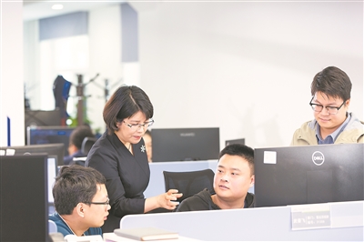 铁路12306青年技术攻关团队成员与中国铁道科学研究院集团有限公司首席研究员单杏花(左二)讨论技术难点。受访者供图