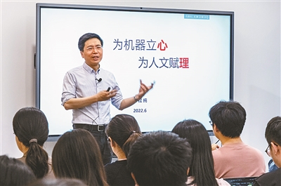 原标题:为机器立“心”(主题) ——记全国政协委员、2025年全国劳动模范朱松纯(副题) 人民政协报记者 李京 易欣 赖仁杰 朱松纯 全国政协委员,北京通用人工智能研究院院长,北京大学人工智能研究院、智能学院院长,清华大学基础科学讲席教授。2025年获“全国劳动模范”称号。 大幕已经揭开。 从辅助科研到艺术创作,从金融分析到自动驾驶,飞速跃进的人工智能有效提升了工作生活的效率和质量,助推多个行业形成新质生产力。越来越多的人相信AI正在改变人类生活,这背后,还有许多如朱松纯一样改变AI的人。 2024年全国两会期间,朱松纯走上了“委员通道”。他介绍的通用智能人小女孩“通通”,刚刚在一个多月前亮相,其具备了三四岁儿童的完备心智。时隔一年,“通通”再次亮相2025中关村论坛年会,并演示了多项更为复杂的任务。而今天的“通通”2.0版本,已经可以完成参考认知心理学定义的多项五六岁儿童应掌握的经典任务…… “通通”如孩童成长般的迭代,离不开作为创造者之一的朱松纯的辛勤劳动。在他的理解中,“作为科研工作者、教育工作者的劳动,就是在改变认知的空间。”前不久,朱松纯获得了“全国劳动模范”的称号。接受表彰的那一天,坐在人民大会堂里的朱松纯想起了自己的父母,而无论是父母从事的改变物理空间的劳动,还是他自己从事的改变认知空间的劳动,劳动的精神内核从未改变:正是这种代代相传的劳动品格,支撑着他不断攻坚克难,为国家人工智能科技创新与人才培养贡献力量。 朱松纯在授课。(图片由受访者提供) 为机器立“心” 与朱松纯的采访不用担心会陷入冷场,他乐于主动开启一个话题。采访前,他从抽屉中取出几页写着批注的科普演讲稿,连同新作《通用人工智能:标准、评级、测试与架构》一起推到记者面前。“未来人工智能要想应用在社会的方方面面,要解决的关键问题就是它必须通用。”这是他的一贯观点。 朱松纯不会只谈科学,话题涉猎很广,从科研范式的创新探索到人才培养的实践,他总能信手拈来。中华优秀传统文化留在他身上的印记同样明显,不只是脱口而出的诗词名句、办公室悬挂着的书法作品,苏轼的《寒食帖》和《赤壁赋》对他的科研思想起了不小的启发作用。 但无论话题如何跳转,最终总会回到朱松纯的“主战场”——通用人工智能。“通用人工智能就相当于一个物理世界的人,它能完成无穷的任务,在一个场景中就知道自己需要做什么,并主动学习怎么做。”说到这,他习惯性地扶了扶眼镜,语气坚定。 “我们的小孩为什么很快能够学会用筷子、搓汤圆……这些日常生活中最习以为常的能力背后其实都是通用人工智能需要研究的核心的技术问题。我们觉得不费劲,并不等于这个问题很简单。恰恰是因为我们针对这些问题进化出了强大的心智和价值体系,这是我们传统文化中俗称的‘心’。” 人工智能和哲学,两个看似毫无交集的概念在朱松纯看来却有着密不可分的联系。他一直在用哲学思维审视人工智能,并提出了一个新的研究路径——为机器立“心”。“中华优秀传统文化能够为人工智能提供一套完整的价值认知体系,有助于促进人工智能‘自主价值’与人类社会伦理一致,实现‘为机器立心’的目标。” 一直以来,朱松纯在做的,是脚踏实地地探索通往未来的路。“人工智能的高质量发展,不仅在于技术领先,还在于推动构建更具有人文关怀的文明范式。人工智能的本质是研究人。”在他看来,要使AI更像人类,需要一个模拟大脑中自上而下机制的认知计算框架。 研究好比耕种,一颗种子播下,当它挨过漫漫寒冬,就有机会在春天破土而出。 2024年3月,国际上首个具身通用人工智能系统原型“通通”在中关村论坛亮相。在互动中,“通通”能够自主完成对环境的探索、收拾房间、擦拭污渍等任务。比如,当互动者故意将墙上的相框移位,“通通”会根据自己“爱整齐”的价值观,灵活地伸展机械臂,轻轻将相框位置摆正。“她不仅能够理解你的话语,还能领会你的意图,甚至在你忙碌时主动提供帮助。” 朱松纯告诉记者,“通通”基于原创的认知架构理论框架以及自主研发的学习和推理框架,拥有独特的“心智”。“从通用智能体到行业智能体,最后到社会智能体,有可能需要上百万个‘通通’互相协作完成任务,这些都是通用人工智能发展的前沿研究方向。” 2024年4月26日,全国政协召开远程协商会,围绕“深化人工智能多场景应用 提升现代产业高质量发展水平”协商议政。朱松纯在发言中建议,重塑通用人工智能场景、行业和产业格局。 在冷清时率先布局,而当热潮涌来,朱松纯反而保持着冷静和思考:“面对未来人工智能的巨变,要以中国之思想,创世界之科技。要让人工智能完备的价值体系和认知架构在价值的指引下自主定义、产生和完成任务,这是迈向通用人工智能的全新的技术路线与科学范式。” 为行业育人 三次问鼎计算机视觉领域国际最高奖项——马尔奖,研发全球首个通用智能人……朱松纯的科研道路看上去是一路坦途,其中几多艰辛,隐在他轻描淡写之中。 2020年8月底,朱松纯怀揣着更宏大的愿景,回国带领科研团队探索AI最前沿。此时,朱松纯预测到了通用人工智能的崛起,也敏锐感知到产业生态的不完善——“无论是技术抑或是人才,与行业发展的需求仍存