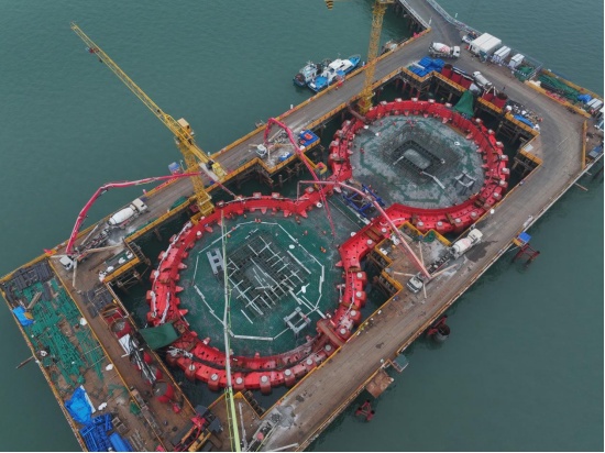 为确保高质量高效率完成建设任务,项目团队科学组织,施工伊始仅用3天即完成封底混凝土浇筑,累计浇筑量约8000立方米,在海上成功构建干燥、安全的作业环境;随后15天内高效完成钢套箱抽水、钢护筒切割、桩头破除及吊装等关键工序,确保后续施工平稳推进。