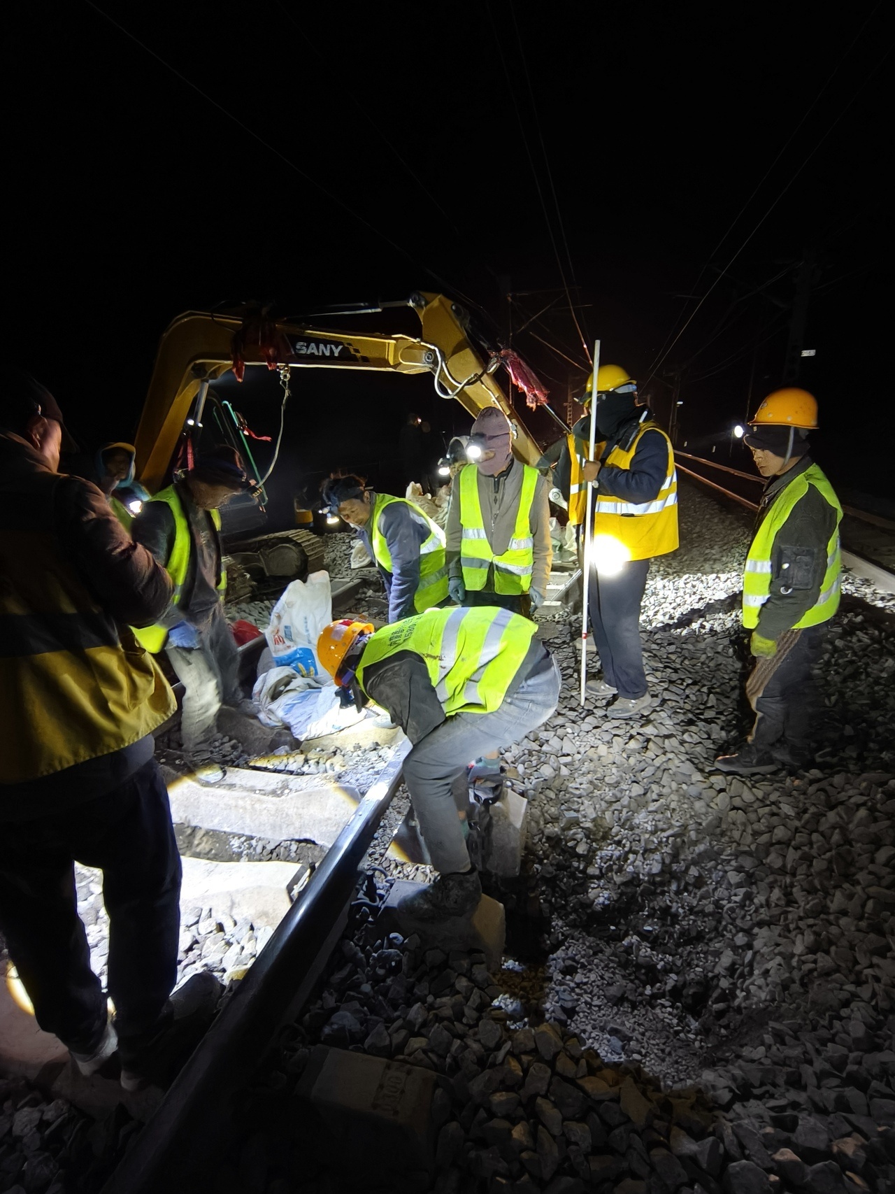 “夜晚光线差,对线路展开路基换填施工,线上人员机械多,大家一定要做好个人安全防护。”5月26日21时50分,青藏铁路哈尔盖站区灯火通明,在车站西咽喉防护栅栏外,西宁工务段10余台多功能挖机和近百名干部职工整装待发,施工负责人张斌对作业前作出安全提示。
