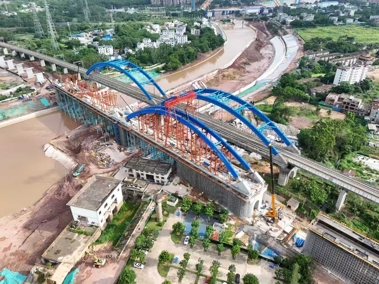 工人日报-中工网记者 张翀 通讯员 王晓艺 徐洪江 6月9日,随着最后一节边桁调节段精准落位,由嘉兴市港航建设开发有限责任公司建设,中铁大桥局集团有限公司承建的浙北沪杭高速长山河大桥改建工程东半幅钢桁梁顺利合龙,为全面通车奠定了基础。 沪杭高速长山河大桥上跨杭平申线航道,全长170米,设计时速为120公里/小时,是浙北高等级航道网集装箱运输通道建设工程(嘉兴段)的重要组成部分。 中铁大桥局沪杭高速长山河大桥改建项目经理安全总监刘亚飞介绍,长山河大桥采用分幅建造的方式施工,吊装区域堪称“交通要塞”,首先是位于船来船往的长山河上,其次是靠近日均车流6万辆的沪杭高速和每日车次密度152.5对的沪昆高铁,且距已通车的西半幅钢桁梁仅1米间距,施工空间受限。在此环境下进行拼装作业,不仅对精度控制要求高,也对安全管控标准提出极大挑战。 为保证施工安全和质量,建设团队一方面提前协调既有线路主管部门、预演施工完整过程、合理安排现场站位和施工顺序、精确控制施工过程、预留施工安全红线,另一方面通过策略调整,将大节段吊装改为小节段吊装,并增设临时支架,将钢桁梁构件先在后方梁场预拼装,严格把控构件尺寸等参数,确保一次成型。再拆分运输至现场进行拼装。同时引入第三方专业测量队伍,与自测、监理测量形成合力,全方位保障安装精度。 沪杭高速长山河大桥建设完成后,将大幅提升浙北内河集装箱的通过能力,拓展嘉兴港、宁波舟山港等港口的经济腹地辐射范围,对浙北海河联运枢纽建设、大宗货物“散改集、陆转水”具有重大意义。
