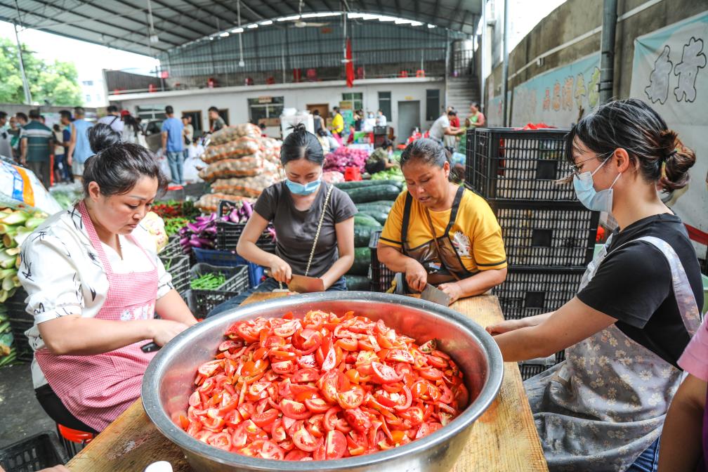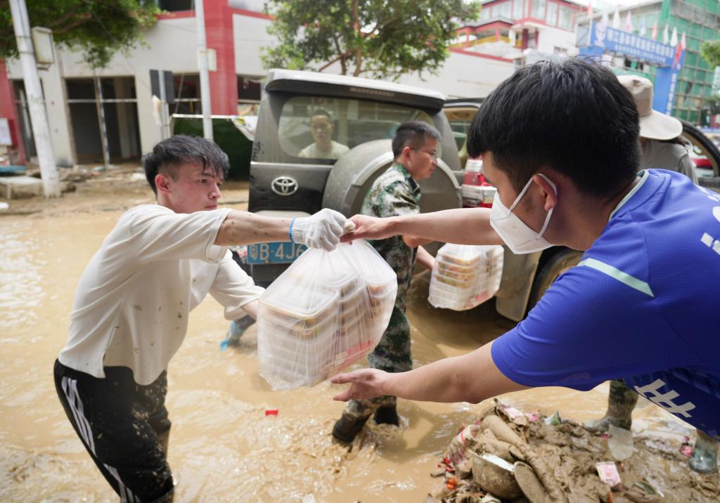 近日 王岭村所在的贵州省榕江县遭遇特大洪水 县域内多处低洼地带被淹 部分乡镇基础设施损毁严重 群众被困 救援人员昼夜奋战在抗洪抢险一线 全力保障人民群众生命财产安全 ↑6月24日,救援人员在贵州省榕江县城转移群众。月寨、王岭等村灾情相对较轻 为了让救援人员能够吃上热饭热菜 乡亲们通过“小喇叭”、微信群等形式 组织起来 带着自家的蔬菜、粮食和腌肉 到后勤伙食保障点 为救援人员生火做饭 “由于村里食堂的菜刀不够 就号召村民自带家伙 也用得更顺手” 一名村干部说 ↑6月26日,月寨村村民从自家菜园采摘西红柿后装车,准备送到忠诚镇的后勤伙食保障点。 ↑6月26日,村民在忠诚镇一处后勤伙食保障点准备饭菜。 ↑6月26日,村民在忠诚镇一处后勤伙食保障点切菜。 ↑6月27日,村民在忠诚镇一处后勤伙食保障点切菜。村民们洗菜、切菜、炒菜、打包 场面热火朝天 剁肉声、炒菜声、搬运号子声此起彼伏 大家齐心协力 全力保障救灾人员及时吃上热乎饭菜 ↑6月26日,村民在忠诚镇一处后勤伙食保障点炒菜。 ↑6月26日,村民在忠诚镇一处后勤伙食保障点打包盒饭。 ↑6月27日,村民(左)把蒸好的馒头送到救援人员手中。 ↑6月26日,工作人员将盒饭送到救灾一线。 ↑6月27日,榕江县城,救援人员在救援间隙吃村民送过来的盒饭。风雨中 你们伸出铁臂保护我们 灶台前 我们递出热饭温暖你们 点点微光汇成星河 这,就是平凡人最美的模样!