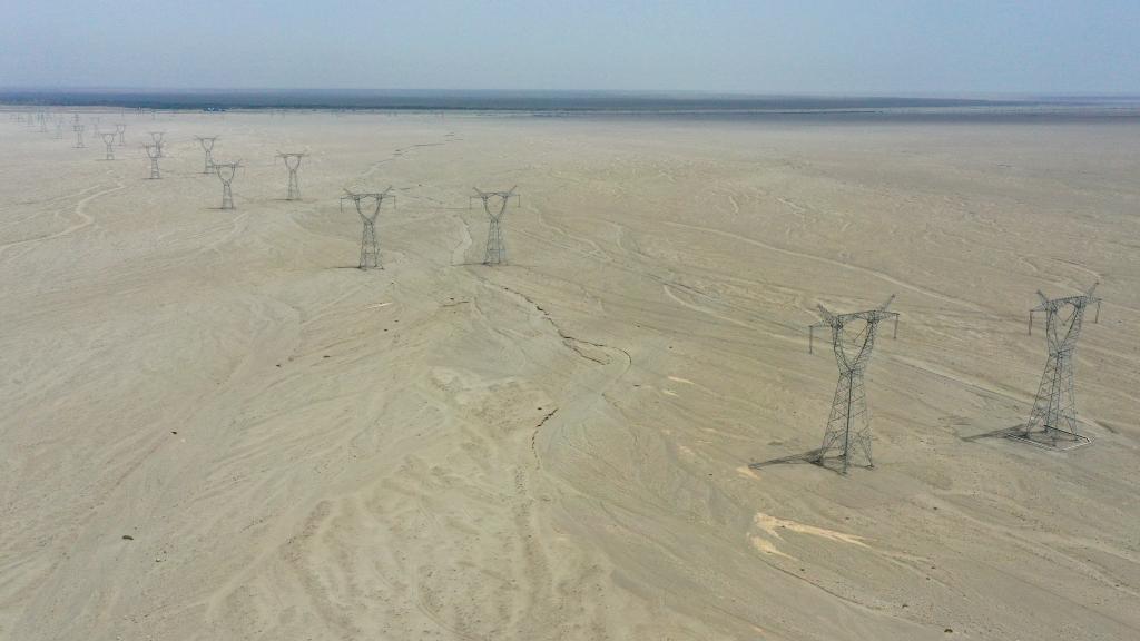 13日 塔克拉玛干沙漠南缘 传来牵引机的轰鸣声 最后一段电线从183号铁塔出发 凌空飞越和若铁路与国道315线 锚定在188号铁塔上 7月13日,在民丰-且末750千伏线路,施工人员在架设最后一段电线(无人机照片)。新华社记者 丁磊 摄 此刻 这条总长4197公里的电力大动脉 如同一条“电力巨龙”在我国最大盆地闭合 上万名电力建设者15年的汗水与智慧 成为南疆发展的不竭动力 更成为南疆各族群众幸福生活的底气 这是6月24日拍摄的且末-若羌750千伏线路。新华社记者 丁磊 摄 4197公里的电线是流淌的“血管” 近1万座扎根沙漠戈壁的铁塔是坚实的“骨骼支架” 9座750千伏变电站则是跳动的“心脏”—— 它们汇聚风电、光电、火电、水电 调整电压后 把电力源源不断地送往四方 “电力巨龙”内部有多大? 它环抱的区域足有53万平方公里 相当于安徽、江西、福建、浙江4省面积之和 这是6月24日拍摄的且末-若羌750千伏线路(无人机照片)。新华社记者 丁磊 摄 国网新疆建设分公司相关负责人徐玉波介绍 在地广人稀的盆地建设环网 电力“血液”可以多路奔涌 告别单线“堵塞”的“缺血”风险 施工人员在且末-若羌750千伏线路开展走线消缺工作(6月24日摄,无人机照片)。新华社记者 丁磊 摄 人们对这条“电力巨龙”期待满满 且末县政协副主席迪里夏提称之为“及时雨” 南疆电气化铁路渴望它加足马力 缩短边疆与远方的距离 矿山钻机等待电力深挖宝藏 唤醒沉睡地下的财富 就连老乡家的电暖气片 也得靠电力供能 迪里夏提说: “过去的220千伏线路像负重的老骆驼,喘不过气。” “如今750千伏就是电力‘高速公路’!” 这是6月24日拍摄的且末-若羌750千伏线路。新华社记者 丁磊 摄 数据印证南疆发展脉搏和对工程的需求程度 2024年南疆用电量737亿度 比2010年飙升约6倍 2025年最大负荷预计同比增长14.3% “电力巨龙”恰逢其时 在新疆环塔里木盆地750千伏输变电工程若羌750千伏变电站,运检人员检测设备温度(6月27日摄)。新华社记者 丁磊 摄 “电力巨龙”由9项工程拼成 8项已投入使用 昆仑山深处的喀让古塔格村 得益于其中一项工程 努尔古再丽·托合提尼亚孜的机器面加工店 再也不用怕揉面揉到一半突然“卡壳” 努尔艾力·吐孙托合提家棉絮加工店的轧花机能“哒哒”响个不停 村民们的笑脸是超级工程的最好注脚 这是6月26日拍摄的中国绿发新疆中绿电若羌400万千瓦光伏项目(无人机照片)。 新华社记者 丁磊 摄 “电力巨龙”更是一架绿电桥梁 电力专家辛超山揭秘时空妙用 新疆与中东部有2-3小时时差 下午4点中东部光伏快速下降时 南疆正是艳阳高照发电高峰 富余光电通过“电力巨龙”汇入“西电东送”大动脉 给全国的灯添点暖光 这是在新疆阿克苏地区沙雅县拍摄的25千瓦光伏产业园区低碳转型新能源项目(4月13日摄,无人机照片)。新华社记者 丁磊 摄 电力专家测算 如果南疆建成1亿千瓦光伏电力 并输送至中东部 可助中东部减少2500万千瓦煤电装机 这是6月27日拍摄的且末-若羌750千伏线路。新华社记者 丁磊 摄 塔里木盆地的六成面积是塔克拉玛干沙漠 “电力巨龙”刺入这片“死亡之海”有多难? 这里的沙子是“活”的 50多米高的沙丘会“走” 刚推平的路瞬间被风沙掩埋 施工车深陷沙窝 建设者推土机开道 土工布“锁沙” 覆碎石、喷水雾、反复碾压 硬是在流沙中“钉”出一条路 新疆和田地区洛浦县,正在建设的环塔里木盆地750千伏输电线路翻山越岭,一路向前方(2024年11月18日摄)。新华社发(马元 摄) 昆仑山北麓19公里更是险峻 材料难以运输 建设者架起空中索道 近3000吨塔材“滑”过山涧 3000吨塔材的重量约等于500头成年非洲大象 环塔里木盆地750千伏输电线路穿越“死亡之海”塔克拉玛干沙漠(6月25日摄)。新华社发(马元 摄) “电力巨龙”的最后一段即将“体检” 整体工程计划今年11月正式“上岗” 届时南疆工厂将更忙碌 昆仑山深处的农牧民家中将更加明亮 散落的绿电将汇成洪流 沿着“西电东送”大动脉奔向全国 温暖千家万户 记者:杜刚、丁磊