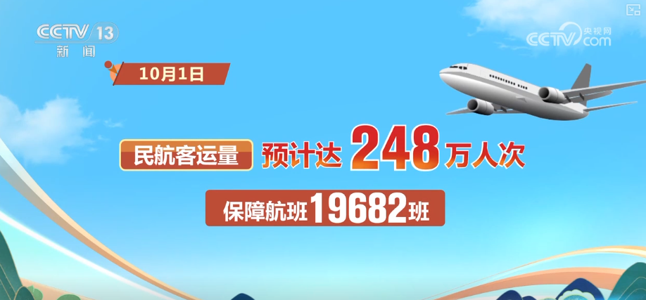 国庆中秋假期首日,民航客运量预计达248万人次,同比增长3.4%,保障航班19682班,航班正常率96%。