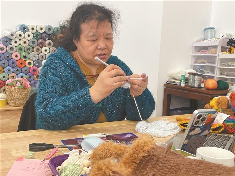 陕西日报记者 杨小玲 见习记者 李畅 11月26日上午,阳光透过玻璃窗,洒在西安高新区雅婷手工艺品专业合作社兴隆社区的工作室里。高亚娥坐在窗前,钩针与毛线舞动间,一个毛线玩偶的小脸轮廓便勾勒出来。高亚娥5年前还是一名全职宝妈,如今,她已经是带领众多姐妹“编织”新生活的工作室负责人。 在这里,一团团普通的毛线,正悄然改写上千名女性的命运,将她们的梦想、价值与希望,紧密相连。 从职场到“织场”,退休后的朱咏梅在雅婷手工艺品专业合作社找到了生活的新方向。图为11月21日,朱咏梅在编织工艺品。陕西日报记者 杨小玲摄 居家“织”出新希望 “姐,我来交活啦,顺便再领点材料!”32岁的李晓静提着满满一兜手工成品,清脆的嗓音打破了工作室的宁静。她也是宝妈,如今已成为这里的“常客”。 “上个月我用工资买了辆电动车,接送娃、出门办事方便多了。”李晓静眉眼带笑,话语里满是对未来的憧憬,“接下来我想多做点,过年给家里添些大件。” 一上午的时间,工作室里格外热闹:有人来交成品、领原料,有人请教编织技巧。高亚娥认真地验货、答疑,手中的钩针却始终没停。不知不觉间,桌上已堆起一排俏皮可爱的毛线玩偶,仿佛一个个承载着平凡梦想的小精灵,静静地诉说着生活的美好与希望。 “以前整天在家带娃、做家务,日子过得虽然安稳,却总觉得少了点啥。”高亚娥感慨地说,加入合作社后,靠自己的双手挣工资,花钱时腰杆都硬了,这种踏实感是以前没有的。 凭借出色的手艺和极强的责任心,2023年,高亚娥成为兴隆社区工作室负责人。如今,她每天除了完成自己的手工活,还要负责培训新人、验收货品、分发原材料。每周,她还会准时前往西安高新区第八初级中学,为学生上手工编织社团课,孩子们眼中闪烁的求知光芒,让她收获了满满的价值感。 “除了兴隆社区,我们还在咸阳市泾阳县、渭南市华州区、宝鸡市陈仓区等地设有10个加工点。”合作社理事长、陕西指间拾光文化发展有限公司负责人高亚婷介绍,目前,该合作社已带动1500余名女性就业,其中既有像高亚娥、李晓静这样的宝妈,也有残疾人、退休妇女,年龄跨度从20多岁到70多岁。“我们按件计薪,不用坐班,大部分人的月收入超过1500元,手快又细心的,一个月能拿到5000多元。”高亚婷说。 “家庭工坊”走向国际舞台 时间回到2006年,彼时的高亚婷不甘于按部就班地工作,毅然从单位辞职,向朋友借来4台毛衣编织机,从加工手套、帽子、围巾起步,不仅自己埋头做活,还动员身边的留守妇女一起“编织梦想”。 2008年,高亚婷的第一个手工坊——心意手工坊正式开张。凭借质优价廉的产品,手工坊很快赢得市场认可,从最初只有三四人的小团队,逐渐发展成百余人的加工队伍。 高亚婷深知“酒香也怕巷子深”。为此,她背着自家手工制品远赴浙江省金华市义乌市,决心开拓更广阔的市场。 那次义乌之行成了关键转折。在一名生意伙伴的引荐下,高亚婷结识了一名欧美客户,自此敲开了国际市场的大门。 “当时国内很多手工艺品生产商没有‘标准化’概念,但出口产品对细节要求特别严。”高亚婷回忆,“比如一个毛线娃娃,用多粗的线,眼睛、耳朵的大小和位置,都有明确标准。”为此,她严格规范生产流程,从线材选择到成品验收,每一步都按标准执行。凭借过硬的品质,手工坊的产品不仅站稳欧美市场,还逐步进入日韩市场,积累了一批稳定客源。 2015年,西安市长安区雅婷手工艺品专业合作社(现西安高新区雅婷手工艺品专业合作社)正式成立,这是长安区首家手工艺品专业合作社。该合作社主打钩针编织、创意布艺玩偶、手工包包等产品,创新采用“流水线生产+分散加工+跨合作社(企业)合作”模式,让女性不用出门就能灵活就业。 凭借出色的编织技艺及在女性创业就业领域的突出贡献,该合作社先后被西安市妇联、陕西省妇联授予“巾帼创业就业示范基地”;高亚婷本人也获得陕西省第三届十大“三秦巧娘”、2019年“西安市巾帼创业明星”等荣誉。 用双手“编织”自己的新故事 在这个舞台上,每双手都在“编织”着自己的新故事。 张建芳在两年间,从一名普通女工成长为线上教学负责人,还成功考取了技工院校教师资格证,成为该合作社里为数不多“持证上岗”的讲师。“以前伸手要钱的日子太被动。”她说,“现在这种‘不依赖别人’的感觉特别好。”考证只是她的第一个“小目标”,她还想学习更多技能,一步步实现人生理想。 泾阳县残疾妇女樊敏,在2018年加入合作社前,因身体原因屡屡求职碰壁。如今,她不仅稳定接单,还开通了抖音账号分享工作日常,并主动为上门请教的姐妹教授针法。“以前找份工作都难,现在足不出户就有收入,我很感恩。希望我的故事能鼓励更多姐妹走出困境。” 刚退休的朱咏梅,也在这里找到了生活的新方向,如今成为西安市青少年活动中心加工点的负责人。“年轻时就梦想开一间自己的手工编织小店,没想到退休后以这种方式圆了梦。”说起现在的生活,朱咏梅脸上洋溢着幸福的笑容。 在合作社里,一根根毛线如同神奇的纽带,将上千名女性的命运紧紧相连。她们用指尖的温柔力量,共同“编织”出属于自己的精彩而自信的人生篇章。