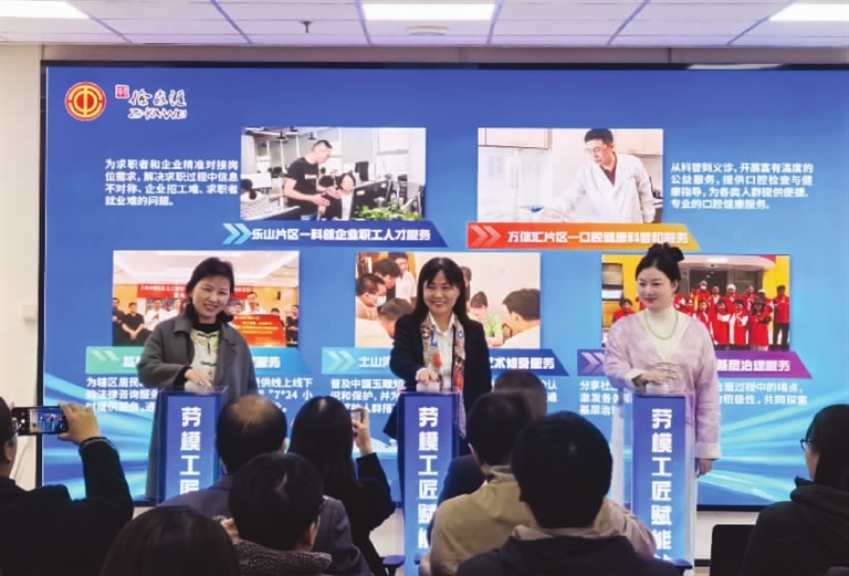 联合会的成立标志着工会服务进一步延伸至基层的最后一公里,也为片区各类群体提供服务搭建了新的平台。“劳模工匠赋能站”将进一步提升联合会为基层工会和会员职工的服务能力。 上图为市劳模余美香、张宁和上海工匠姚圣云启动“劳模工匠赋能站”。 ■受访对象供图