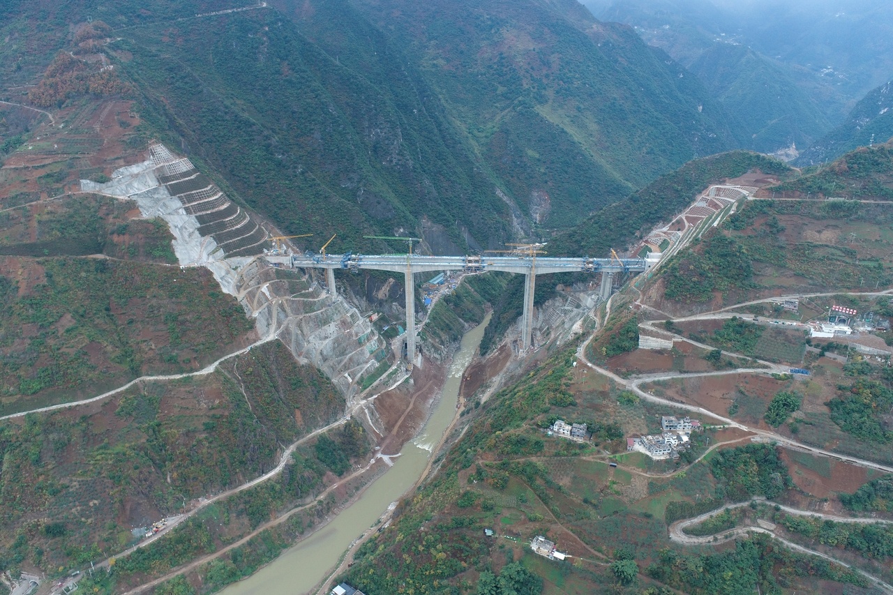 洛泽河特大桥位于云南省彝良县,跨越深切峡谷,两端与隧道相接,为山区铁路典型的“两隧夹一桥”V形地貌。桥梁长524.9米,为双幅单线预应力混凝土刚构连续梁桥,主跨180米,最大墩高达150米。建成后的洛泽河特大桥将成为目前世界时速350公里高速铁路跨度最大、墩身最高、边坡最高的预应力混凝土梁桥。